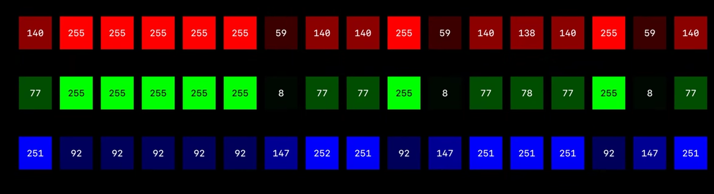再然后, 如果该像素点和前一个差距没这么小, 但仍然在各个通道上有相同的变化趋势, 那么 QOI 就会用两个数字储存这一像素点, 也就是